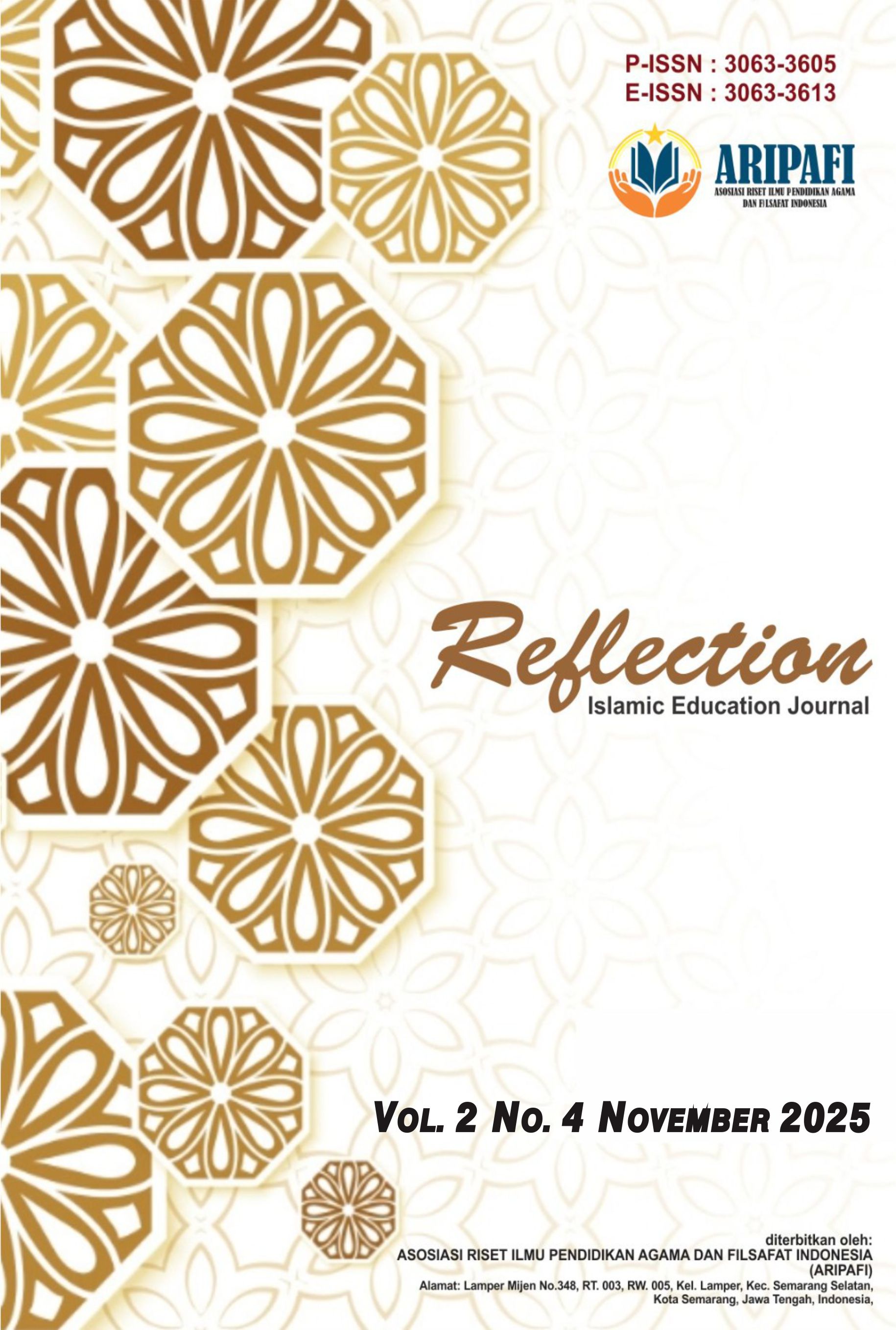 Reflection : Islamic Education Journal, yang ditujukan untuk publikasi artikel ilmiah yang diterbitkan oleh Asosiasi Riset Ilmu Pendidikan Agama dan Filsafat Indonesia, adalah jurnal yang menyajikan wawasan, penelitian, dan pemikiran kritis di bidang pendidikan Islam. Jurnal ini menekankan pentingnya refleksi dalam proses belajar dan mengajar Islam, baik di sekolah maupun dalam lingkungan pendidikan informal. Setiap edisi jurnal ini membawa pembaca pada perjalanan refleksi mendalam tentang berbagai aspek pendidikan Islam. Mulai dari mengevaluasi metode pengajaran yang telah digunakan, menganalisis kurikulum pendidikan Islam, hingga mendeskripsikan pengalaman pribadi dalam memahami dan menerapkan ajaran Islam dalam kehidupan sehari-hari. Jurnal ini terbit 1 tahun 4 kali (Februari, Mei, Agustus, dan November).